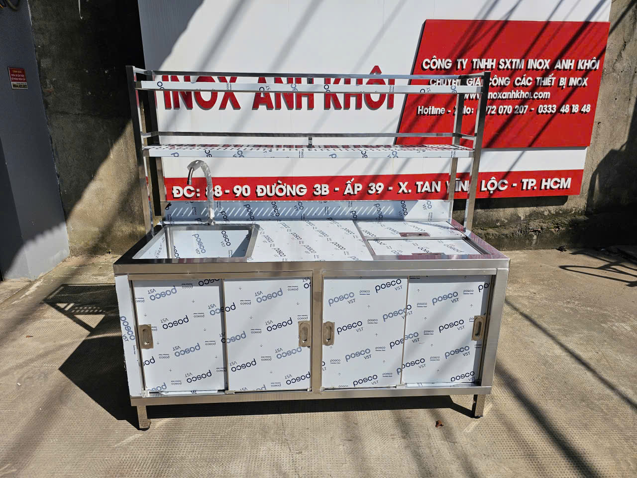 - SẢN XUẤT INOX ANH KHÔI - CHẤT LIỆU INOX 304 - KÍCH THƯỚC D1600*R700*C800/1550mm