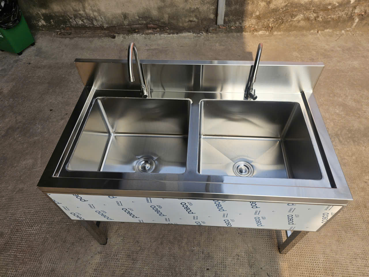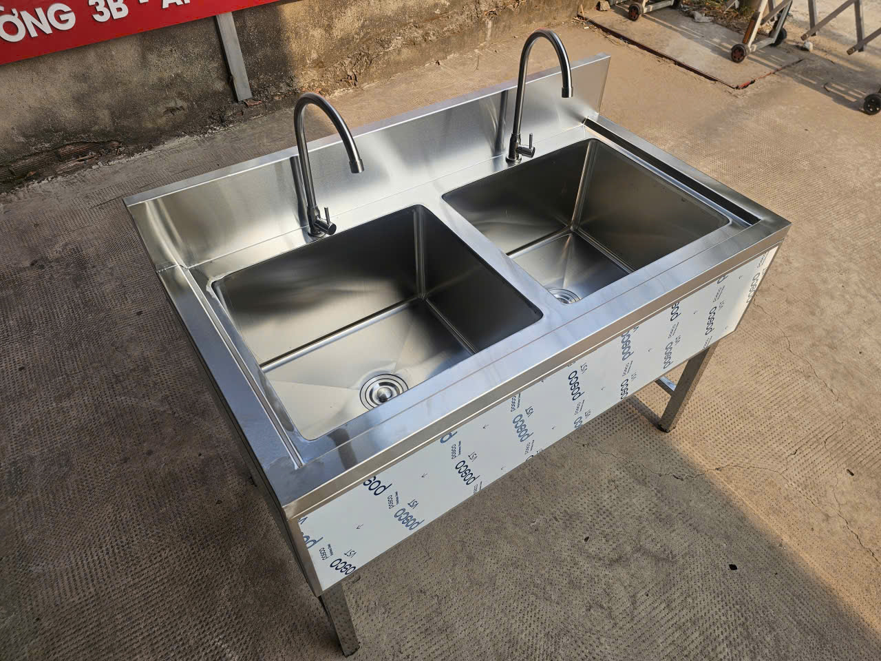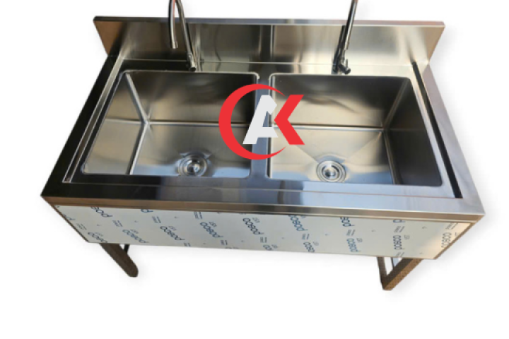 CHẬU RỬA INOX 304 2 NGĂN ỐP 3 MẶT 1200x630x800/950MM CHUẨN PHÒNG SẠCH