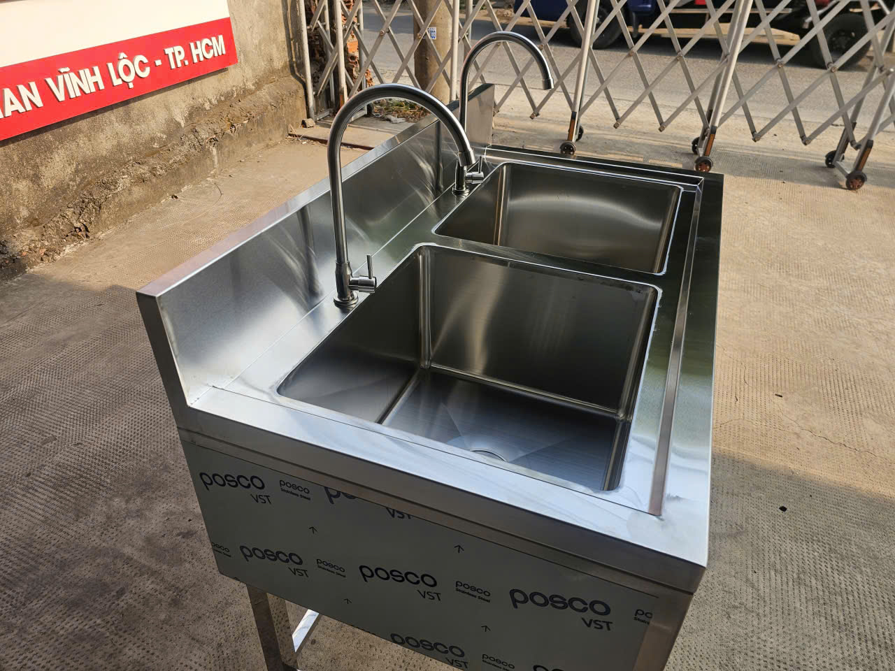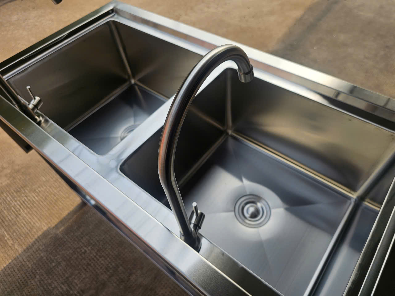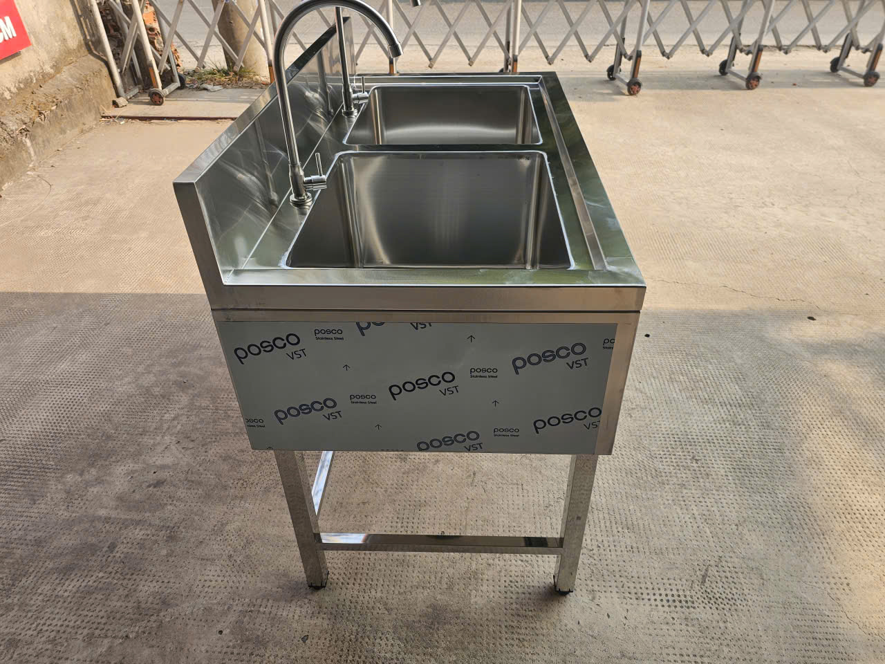 CHẬU RỬA INOX 304 2 NGĂN ỐP 3 MẶT 1200x630x800/950MM CHUẨN PHÒNG SẠCH