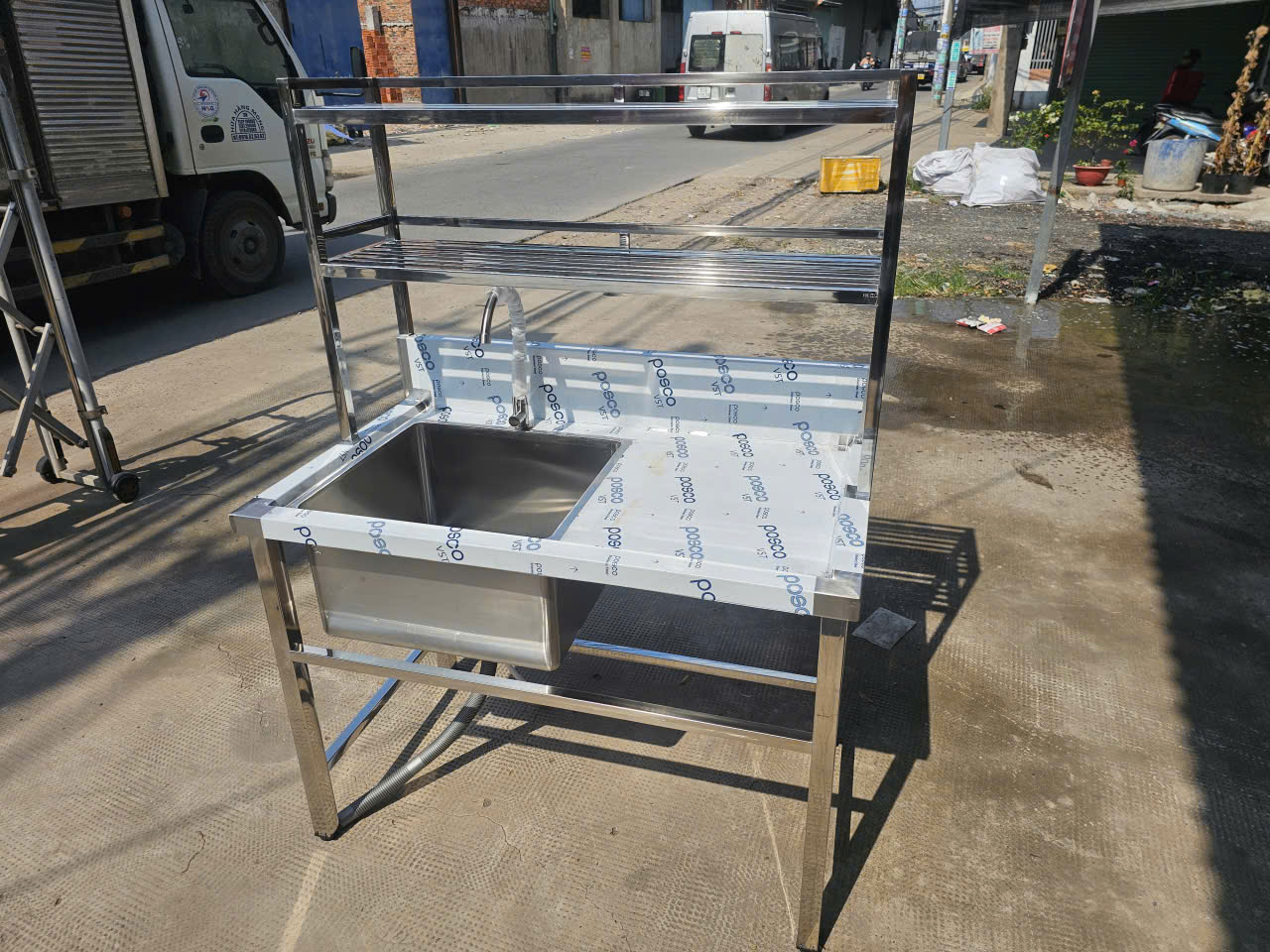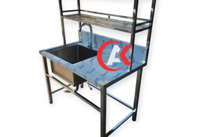 Chậu rửa bàn chờ 2 kệ trên inox 304 là lựa chọn lý tưởng cho không gian bếp hiện đại và các khu vực yêu cầu tiêu chuẩn vệ sinh cao. Thiết kế tích hợp chậu rửa, bàn chờ và 2 kệ trên giúp tối ưu diện tích, nâng cao hiệu quả sử dụng và đảm bảo sự gọn gàng, chuyên nghiệp.