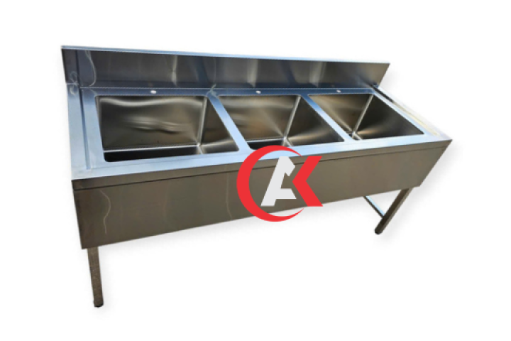 Chậu rửa 3 ngăn ốp kín inox 304 kích thước D1800 x R630 x C800/950mm là giải pháp tối ưu cho các khu bếp chuyên nghiệp. Với thiết kế tiện dụng, độ bền cao và khả năng đáp ứng tiêu chuẩn vệ sinh nghiêm ngặt, đây là thiết bị đáng đầu tư cho bất kỳ mô hình kinh doanh ẩm thực nào.