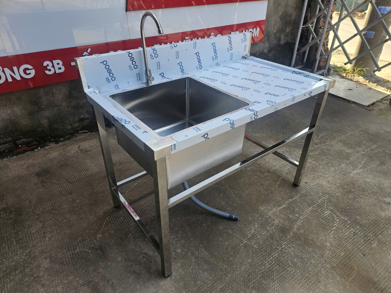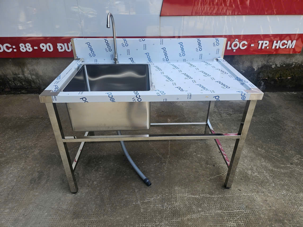 Chậu rửa inox là thiết bị không thể thiếu trong các khu bếp công nghiệp, nhà hàng, quán ăn hay khu chế biến thực phẩm. Trong đó, mẫu chậu rửa 1 hộc có bàn chờ chất liệu inox 304 với kích thước D1200 x R700 x C800/950 mm đang được ưa chuộng nhờ tính tiện dụng, độ bền cao và phù hợp với nhiều không gian sử dụng.