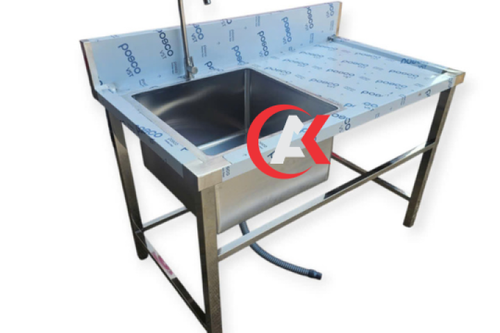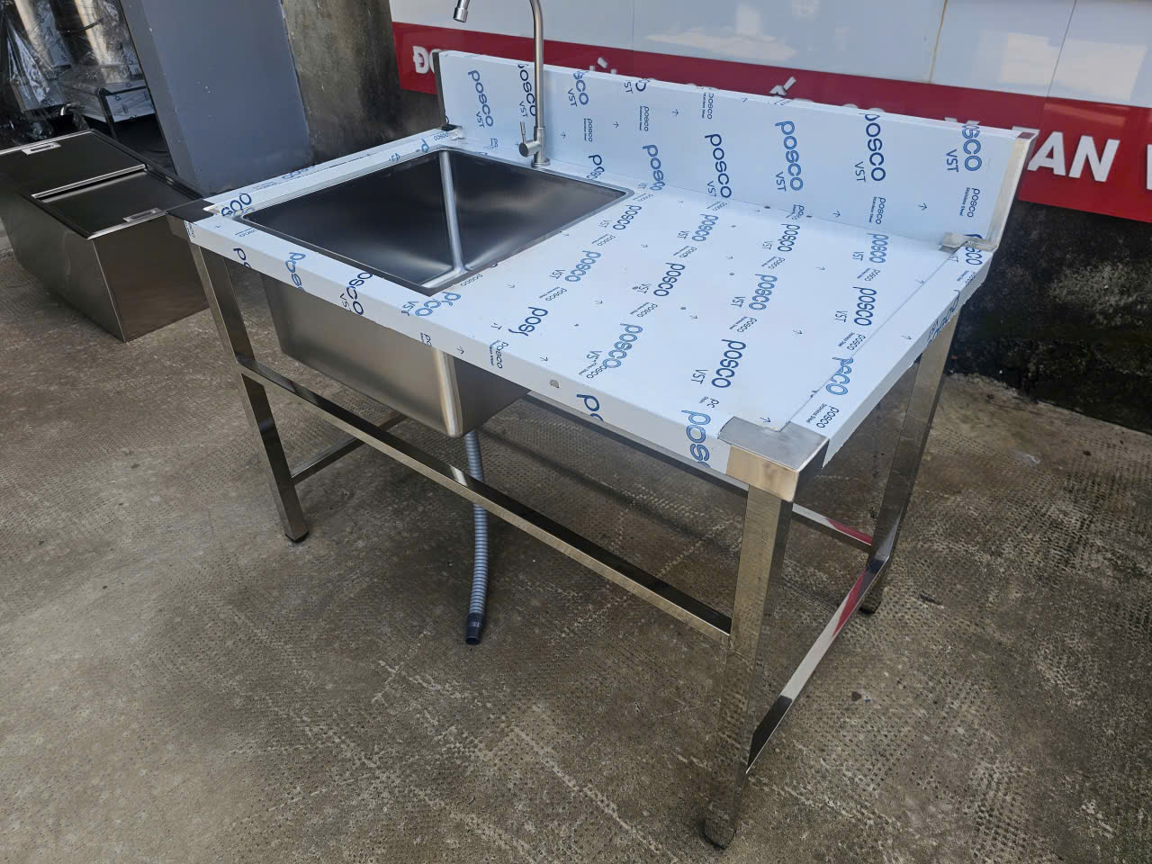 GIA CÔNG CHẬU RỬA 1 HỘC CÓ BÀN CHỜ INOX 304 – KÍCH THƯỚC D1200 x R700 x C800/950 mm