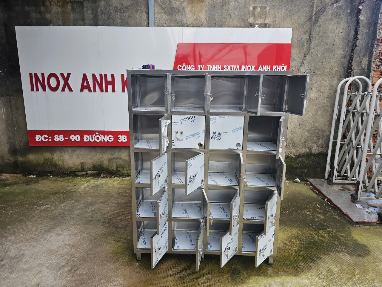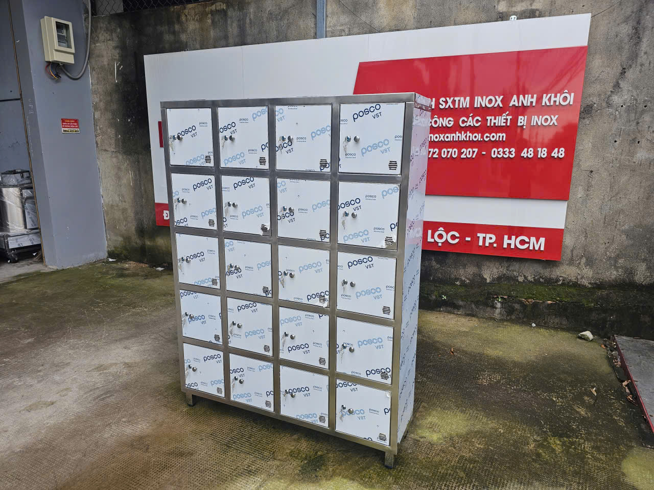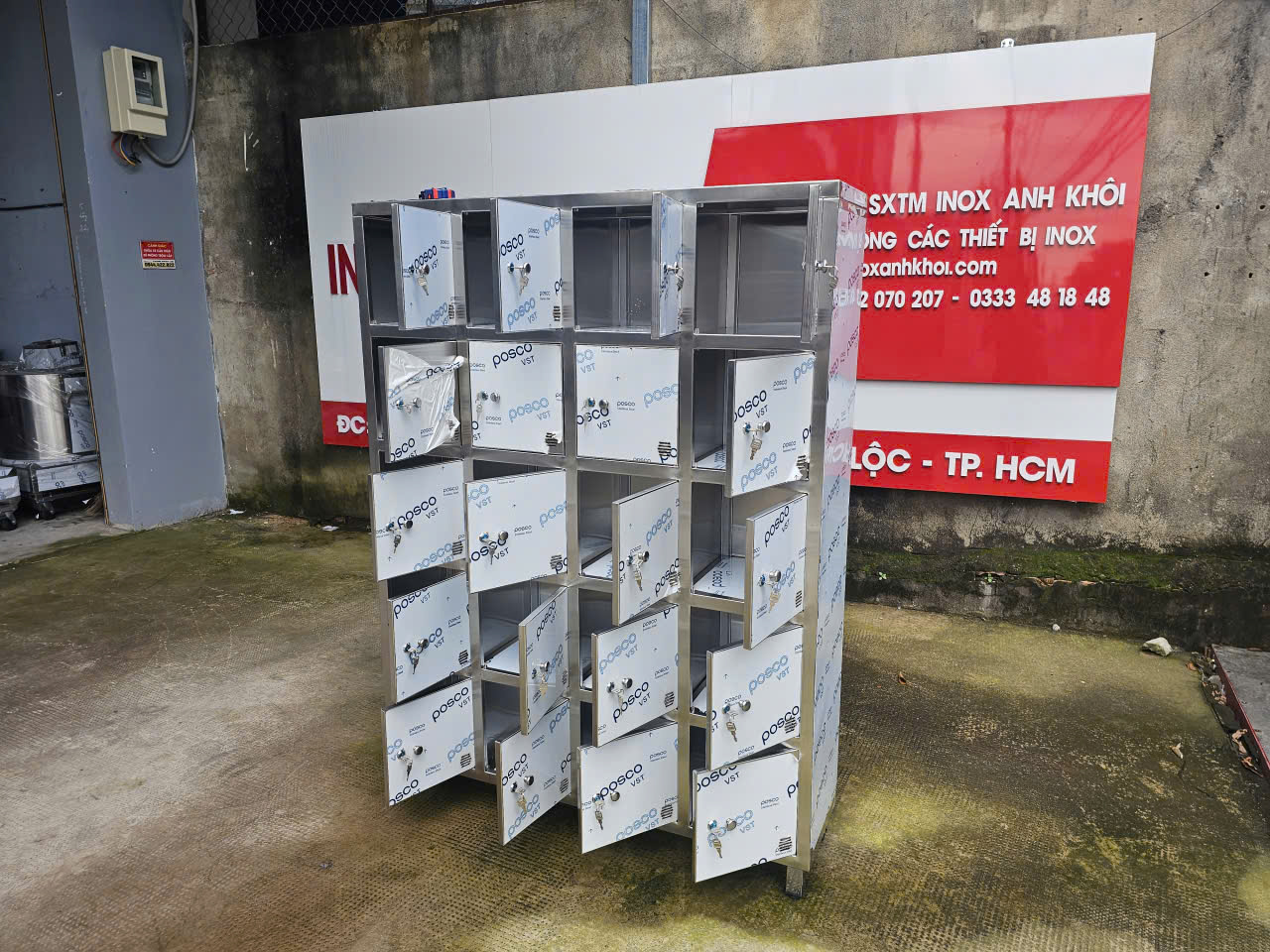 Tủ locker inox 304 20 ngăn do Inox Anh Khôi trực tiếp gia công là sản phẩm được nhiều doanh nghiệp, nhà máy, trường học, và khu công nghiệp tin dùng.