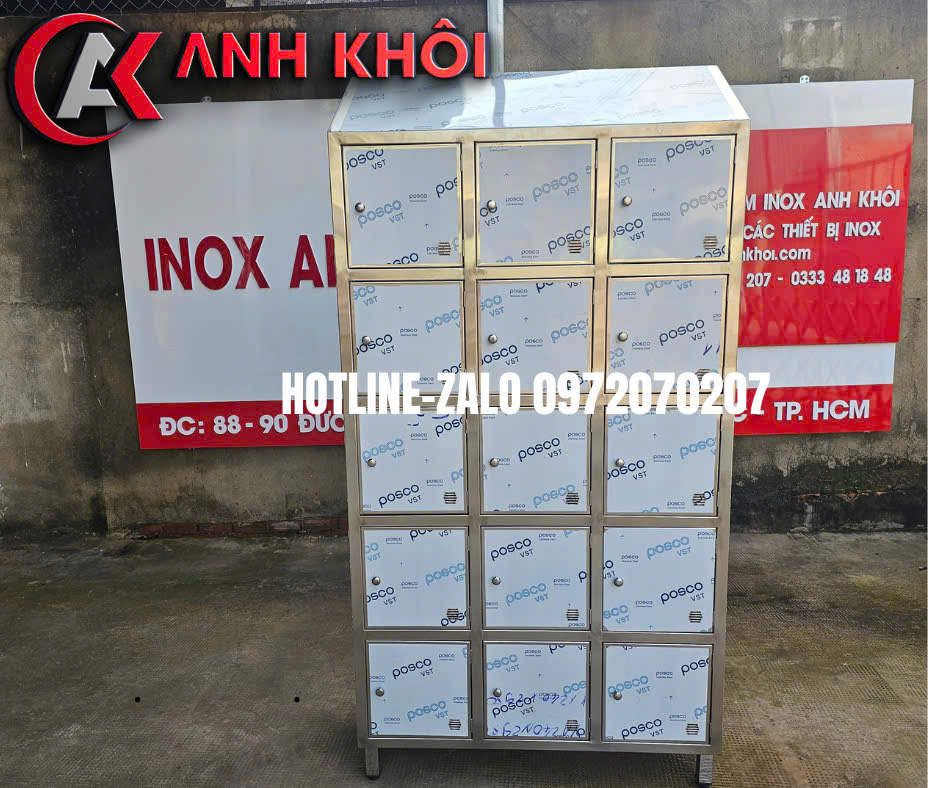 GIA CÔNG TỦ LOCKER INOX MÁI XÉO 15 NGĂN