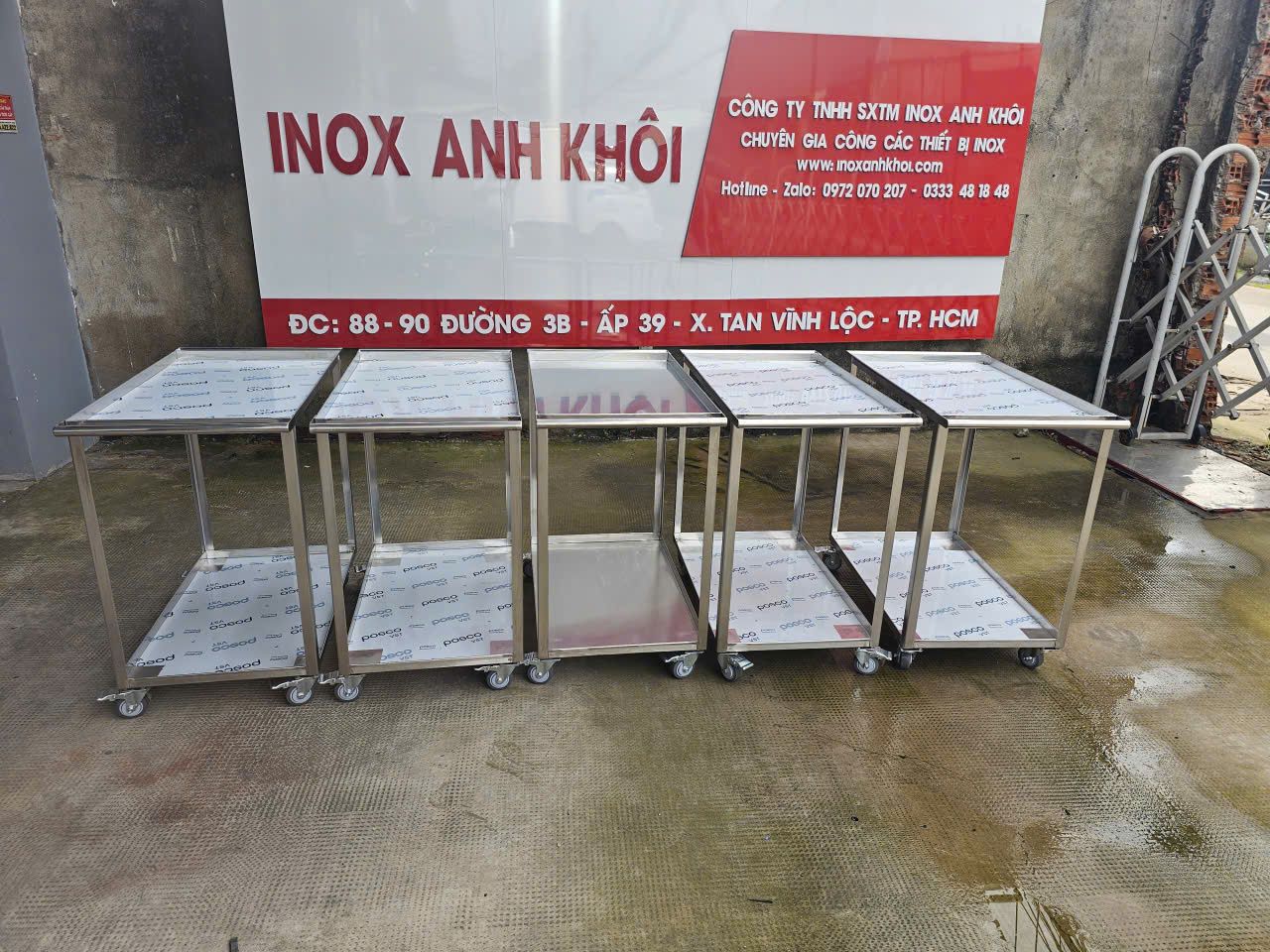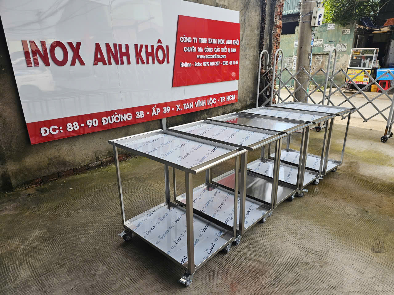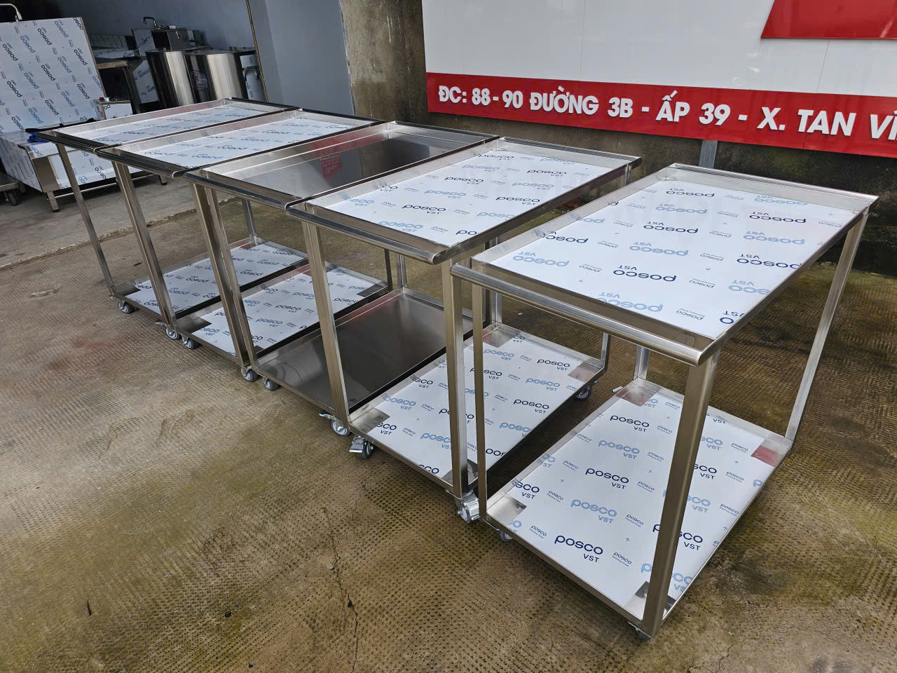 Xe đẩy 2 tầng, 3 tầng: Dùng trong nhà hàng, khách sạn, bếp công nghiệp.
