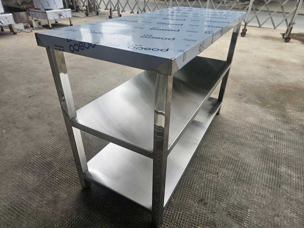 Kệ Phẳng Inox 3 Tầng Inox 304 Kích Thước D1200xR500xC800mm – Bền Bỉ, Tiện Lợi Cho Mọi Không Gian