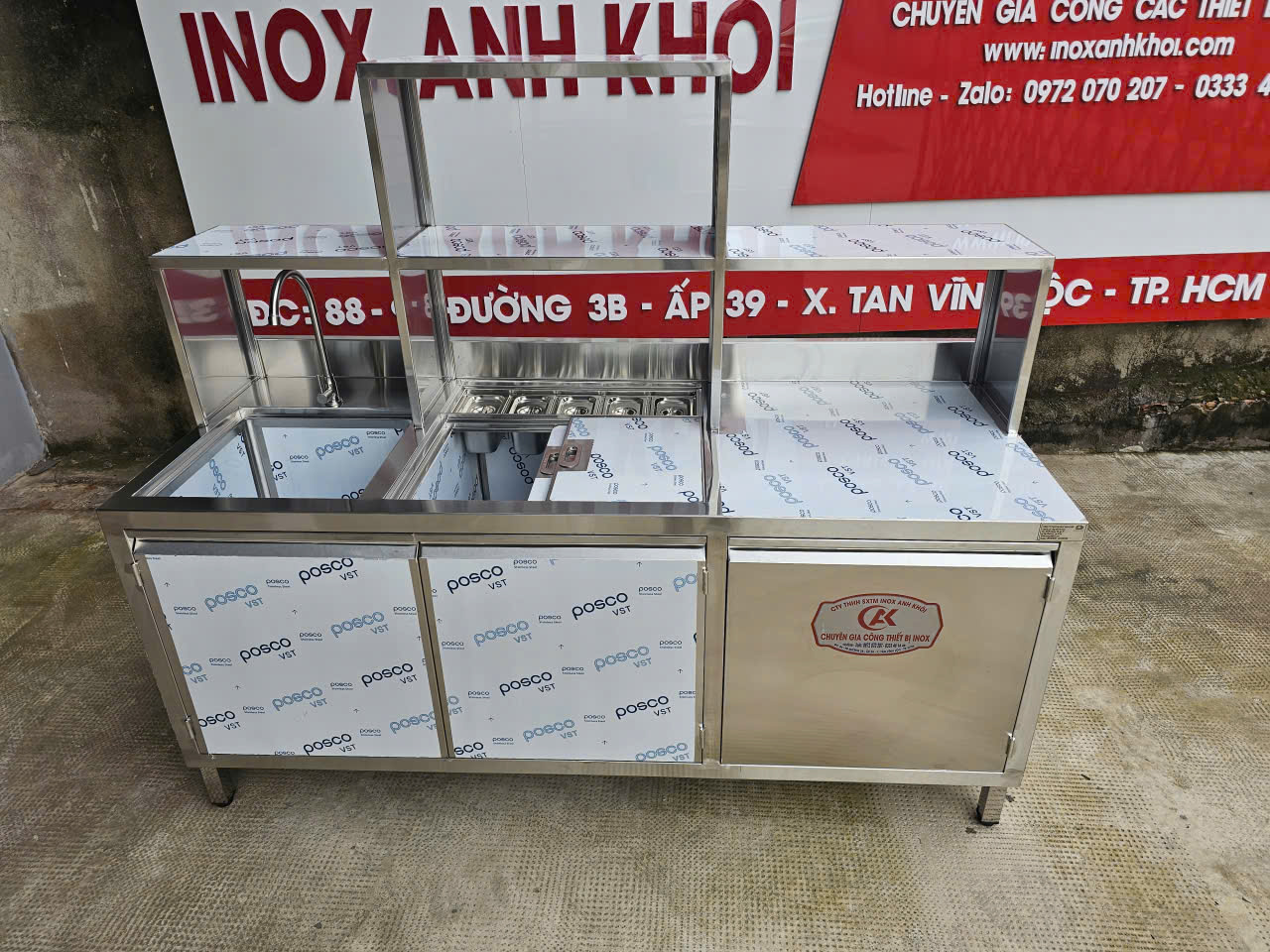 - SẢN XUẤT INOX ANH KHÔI - CHẤT LIỆU INOX 304 - KÍCH THƯỚC D1800*R700*C1525mm