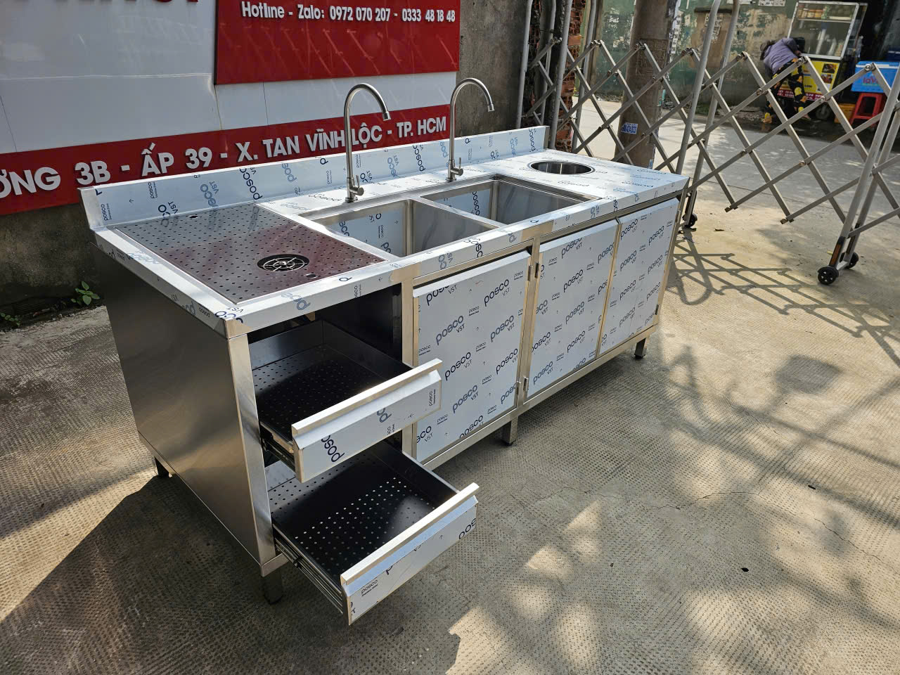 - SẢN XUẤT INOX ANH KHÔI - CHẤT LIỆU INOX 304 - KÍCH THƯỚC D2000*R700*C800/950mm