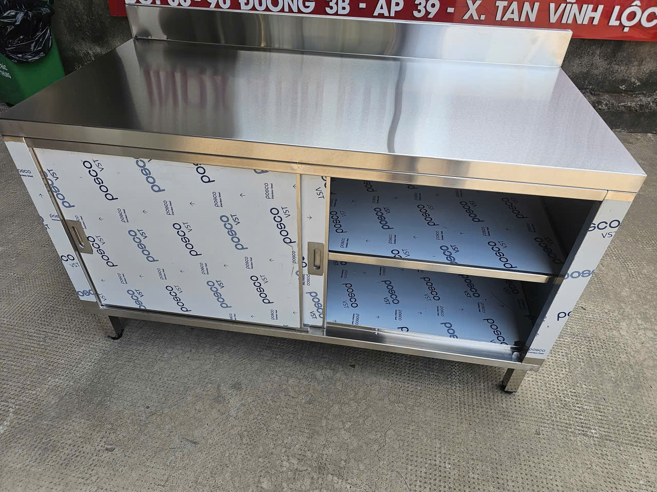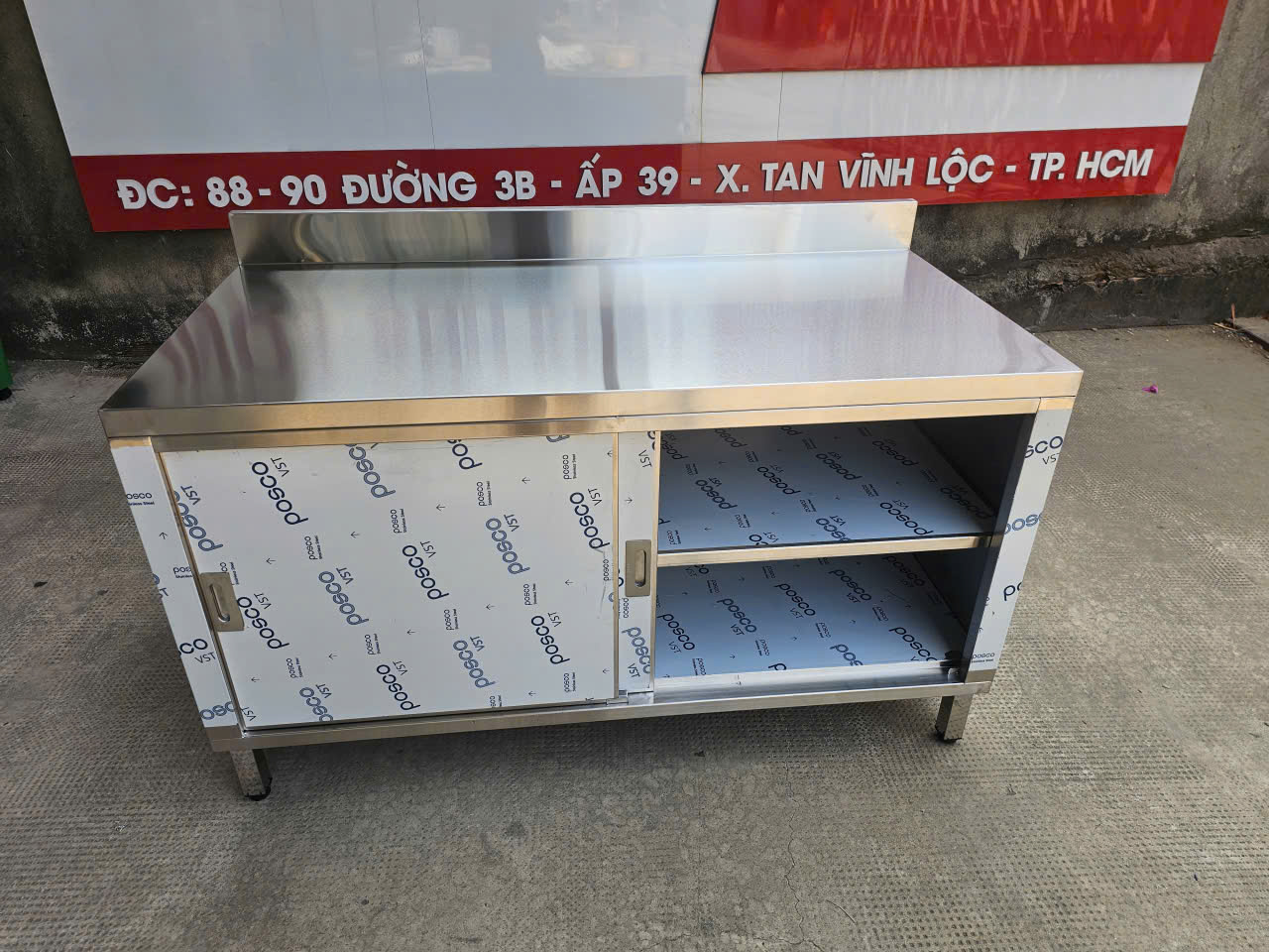 Tủ inox 304 cửa lùa có gáy, chia ngăn 1400x700x800/900mm là giải pháp lưu trữ chuyên dụng cho bếp công nghiệp, nhà hàng, quán ăn và bếp gia đình. Sản phẩm được gia công từ inox 304 cao cấp, đảm bảo độ bền vượt trội, chống gỉ sét và dễ vệ sinh trong môi trường ẩm ướt.