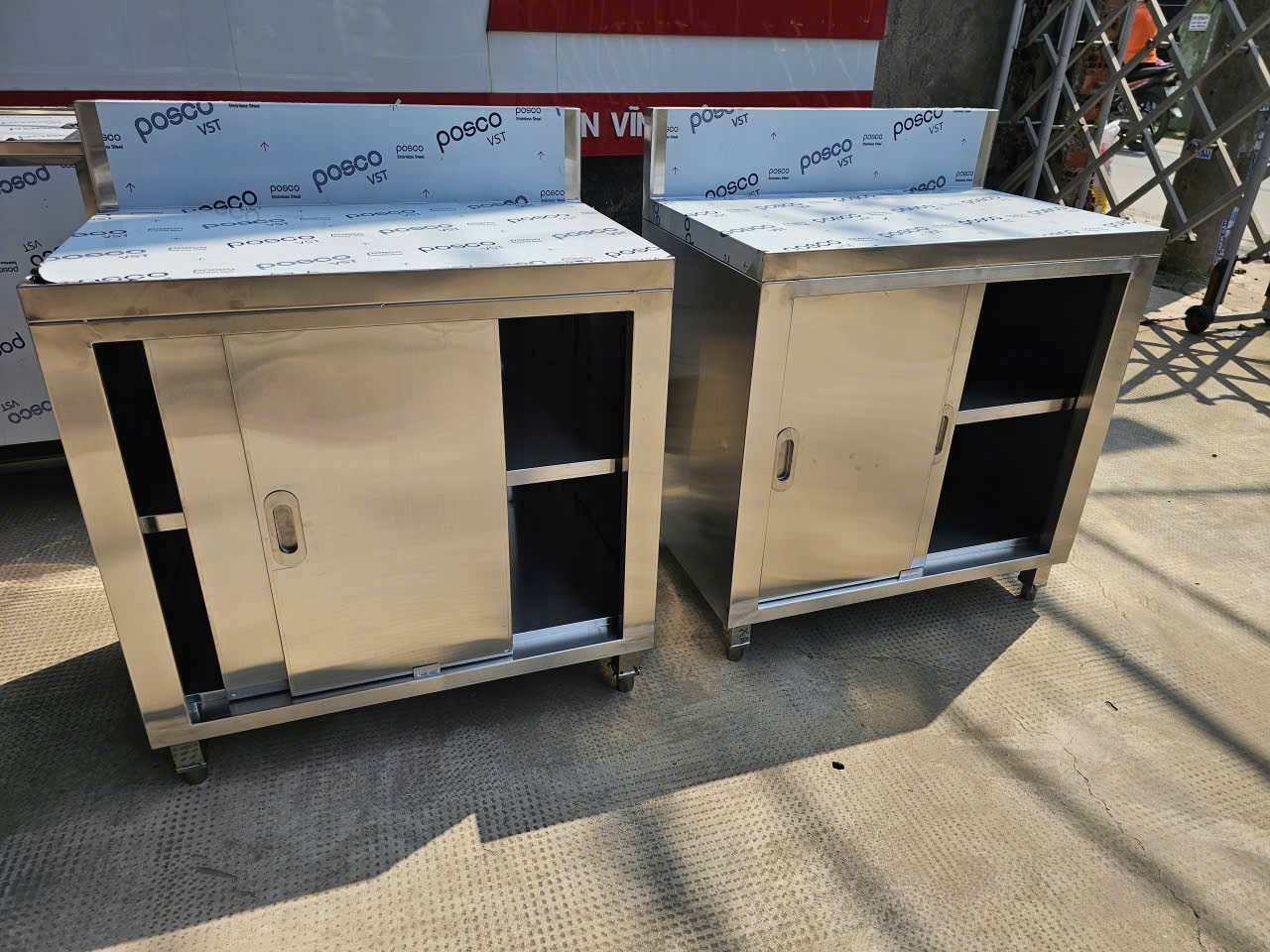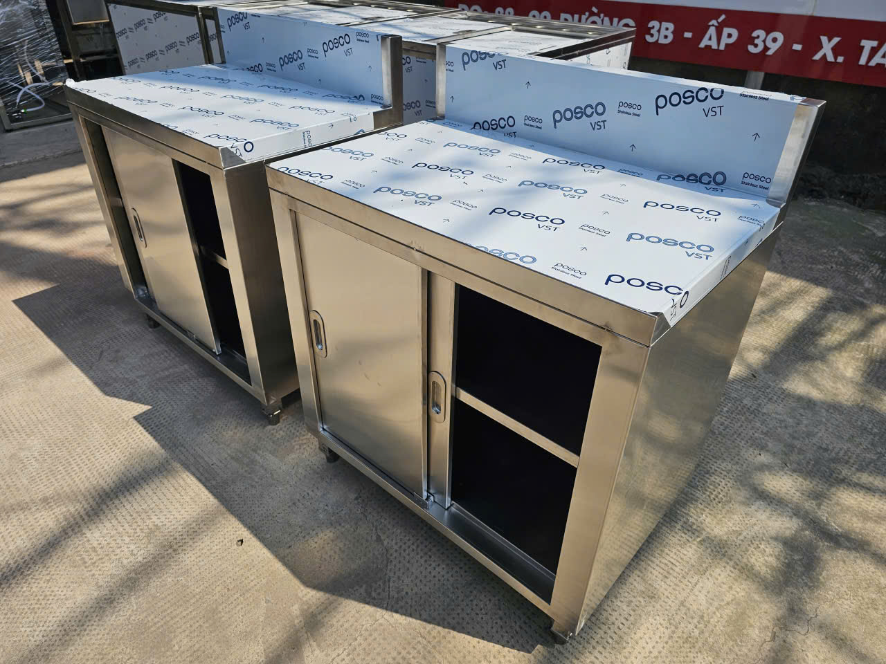 TỦ INOX CỬA LÙA CÓ GÁY – INOX 304