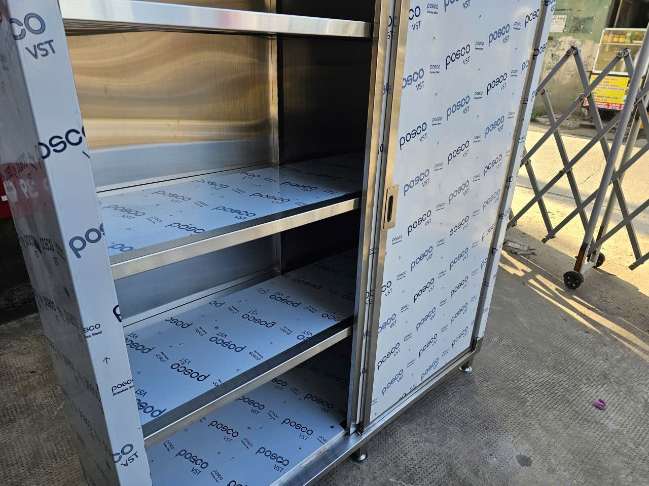 Tủ Inox 304 4 Tầng Cửa Lùa – Giải Pháp Lưu Trữ Bền Bỉ, Tiết Kiệm Không Gian