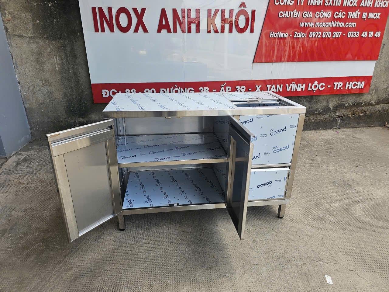 Tủ Inox Quầy Cafe Có Thùng Đá – Giải Pháp Pha Chế Chuyên Nghiệp, Tiết Kiệm Không Gian